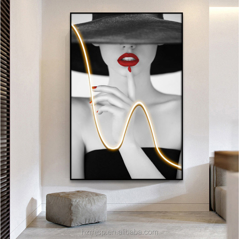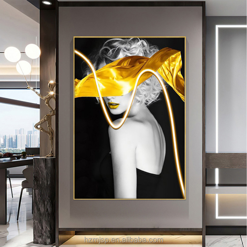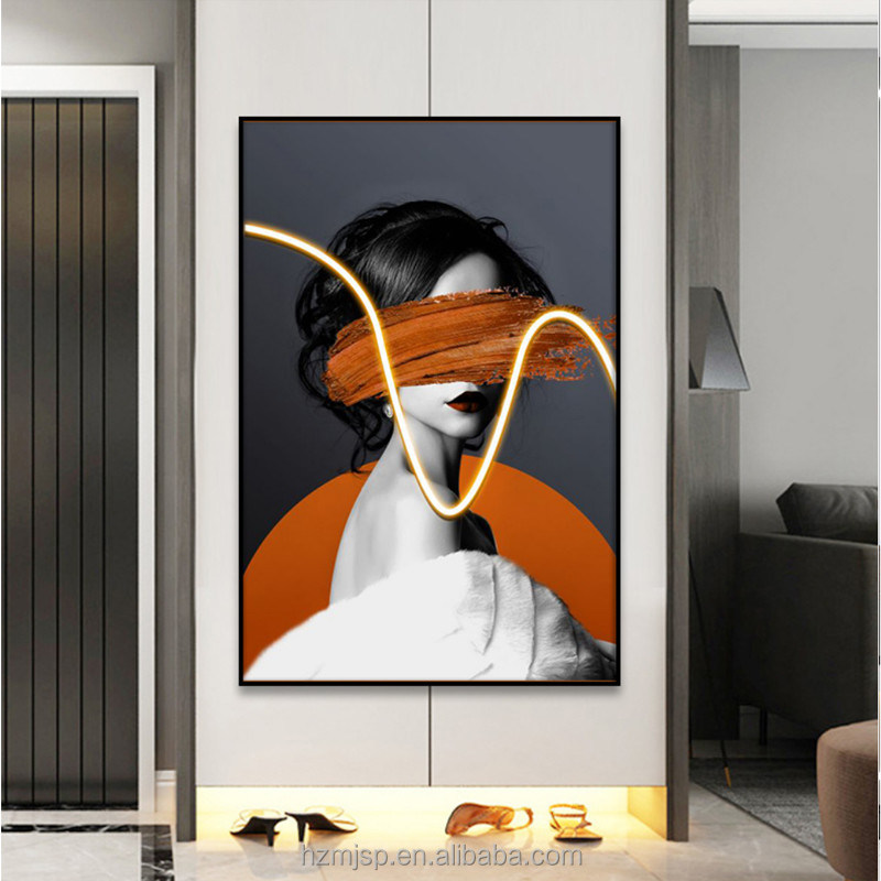 Modern Stil Giriş Dekoratif Işıklandırma Resim Duvar Sanatı Işık Portre Posteri 3 boyutlu LED boyama ile tuval üzerine basıldı