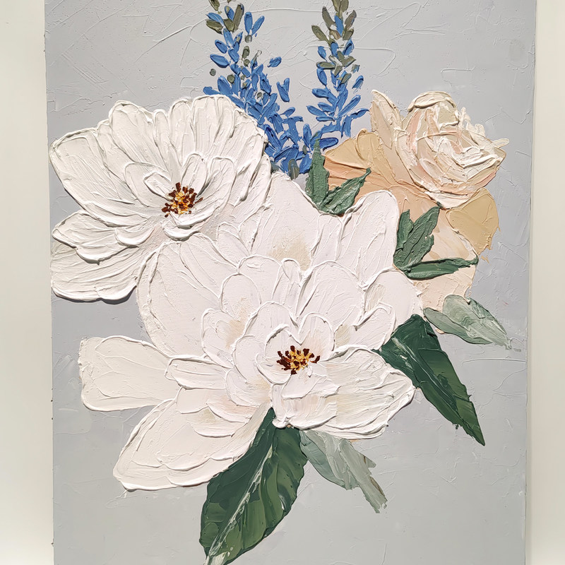 Modern Teksturlu Tuğla Yağlı Resim Soyut Çiçek El Boya Salon Duvar Sanatı 2