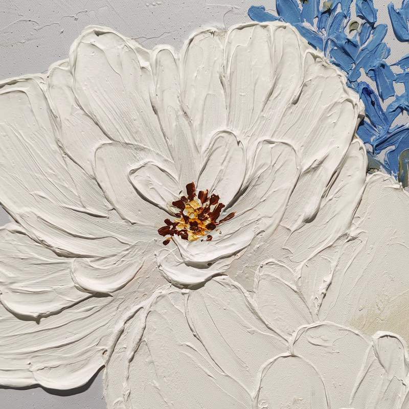 NO Çerçeve Modern dokulu tuval Abstrak Beyaz Çiçek Yağlı Boyaması El Boyamalı Oturma Odası Ev Dekoru
