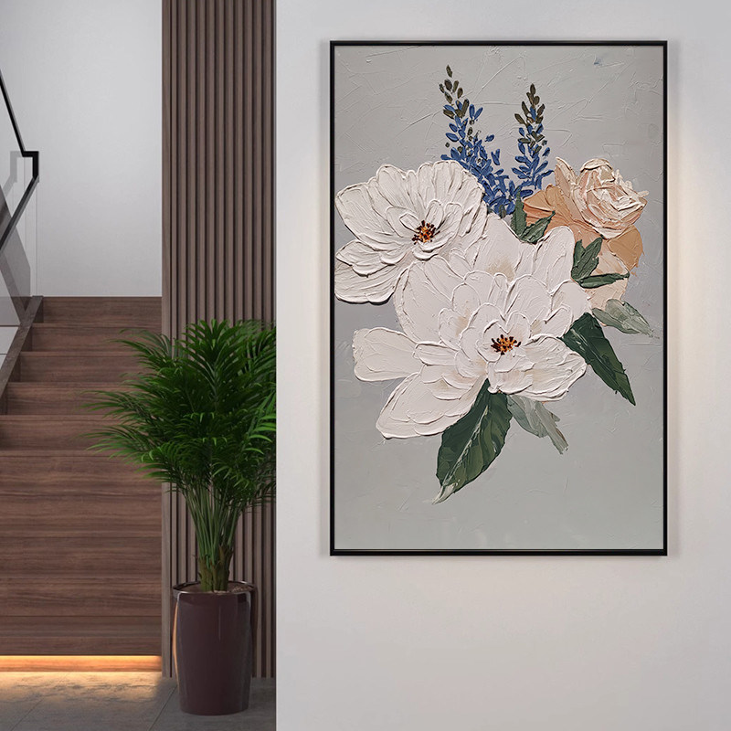 Modern Teksturlu Tuğla Yağlı Resim Soyut Çiçek El Boya Salon Duvar Sanatı 0