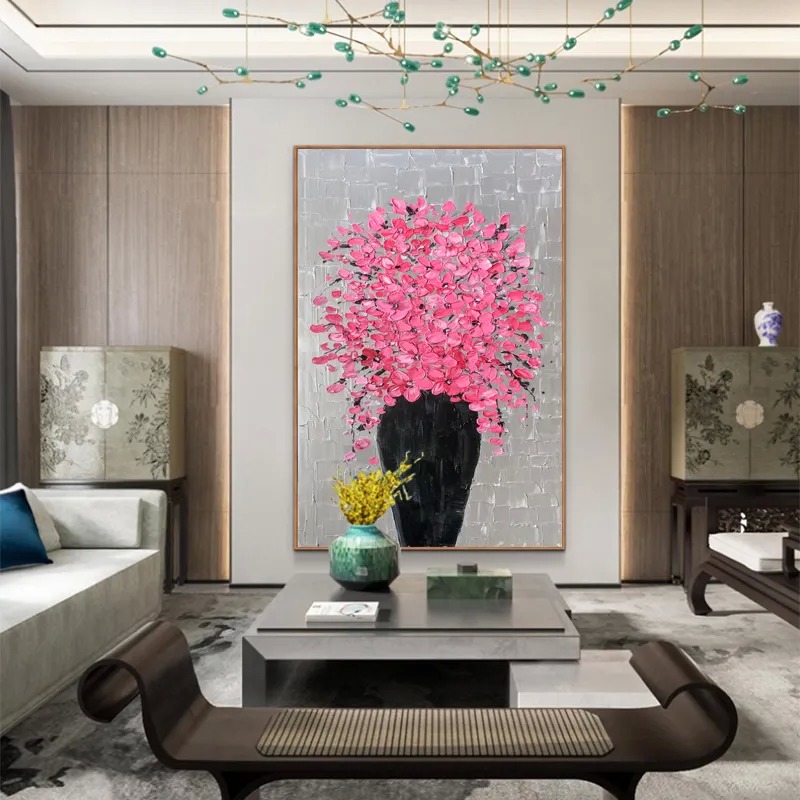 Modern Ev Dekoru Kalın doku Soyut 3B Relief Bıçak Çiçek yağı El boyalı tuval duvar sanatı